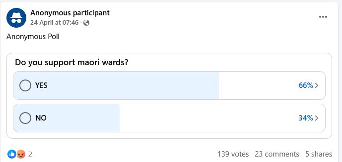 Māori Wards Poll in Whakatane Have Your Say. 66% Yes. 34% No.