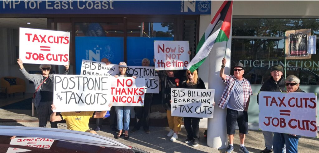The Postpone The Tax Cuts campaign by the Whakatane Act Local group were taking to the streets of our hometown calling for the tax cuts to be postponed until they were, if not justifiable, then at least affordable.