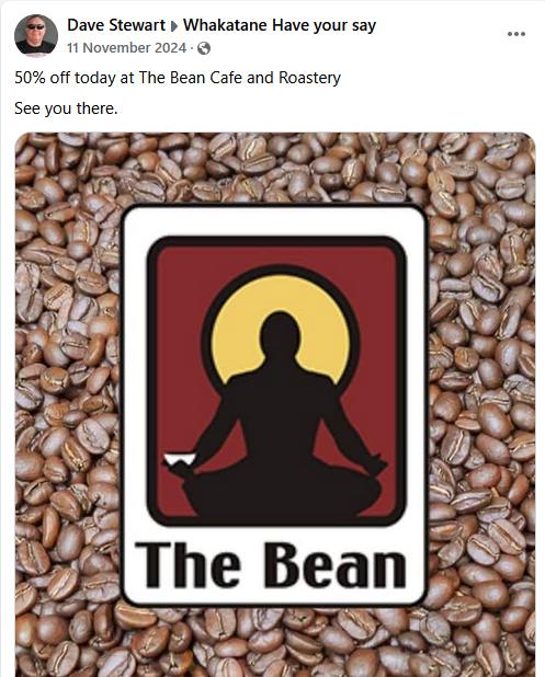 50% off today at The Bean Cafe and Roastery