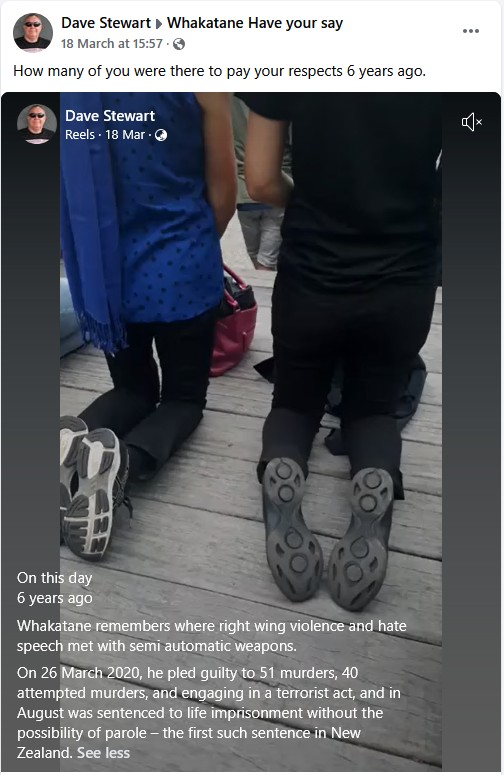 Dave Stewart Whakatane Have your say 18 March 2025How many of you were there to pay your respects 6 years ago.